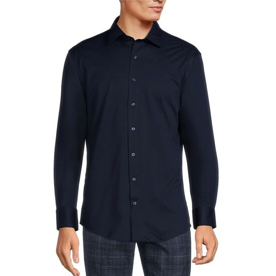 - Long sleeves with single-button barrel cuffs; exact sleeve length for the perfect fit